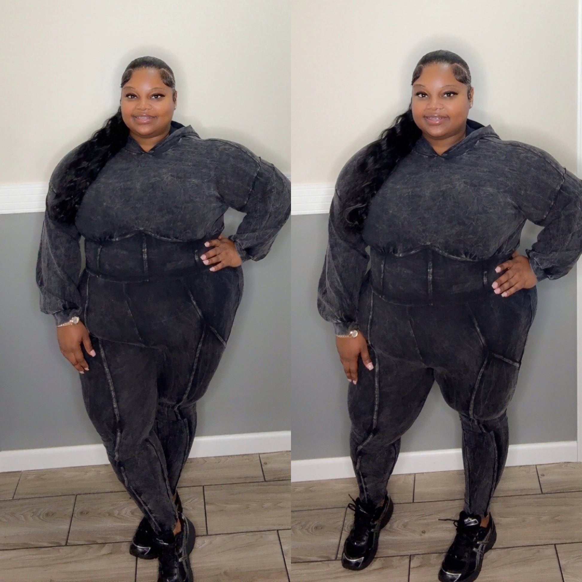 “WEEKEND EDIT” acid washed hoodie set(black)