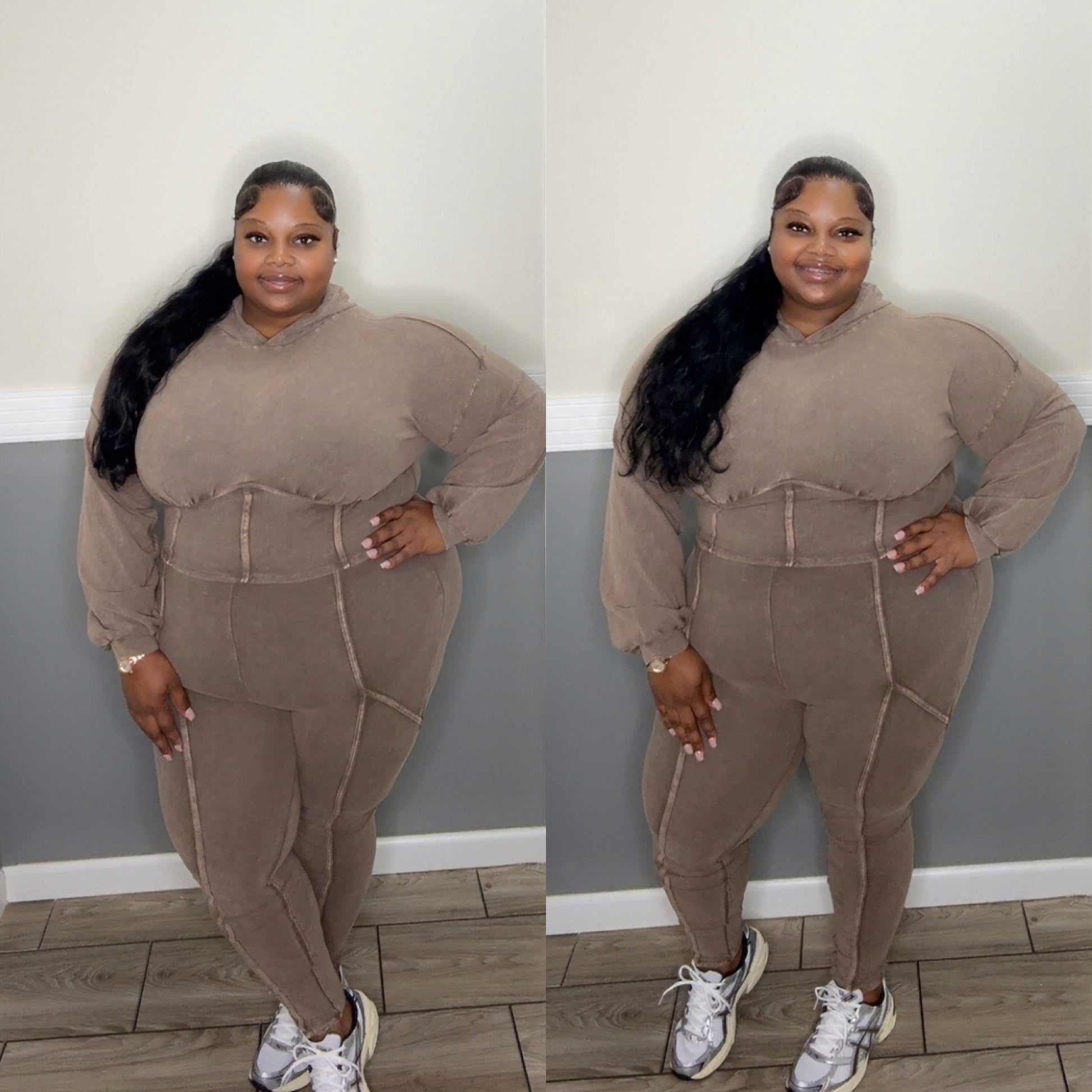 “WEEKEND EDIT” acid washed hoodie set(brown)